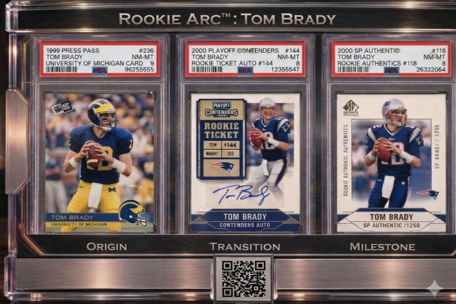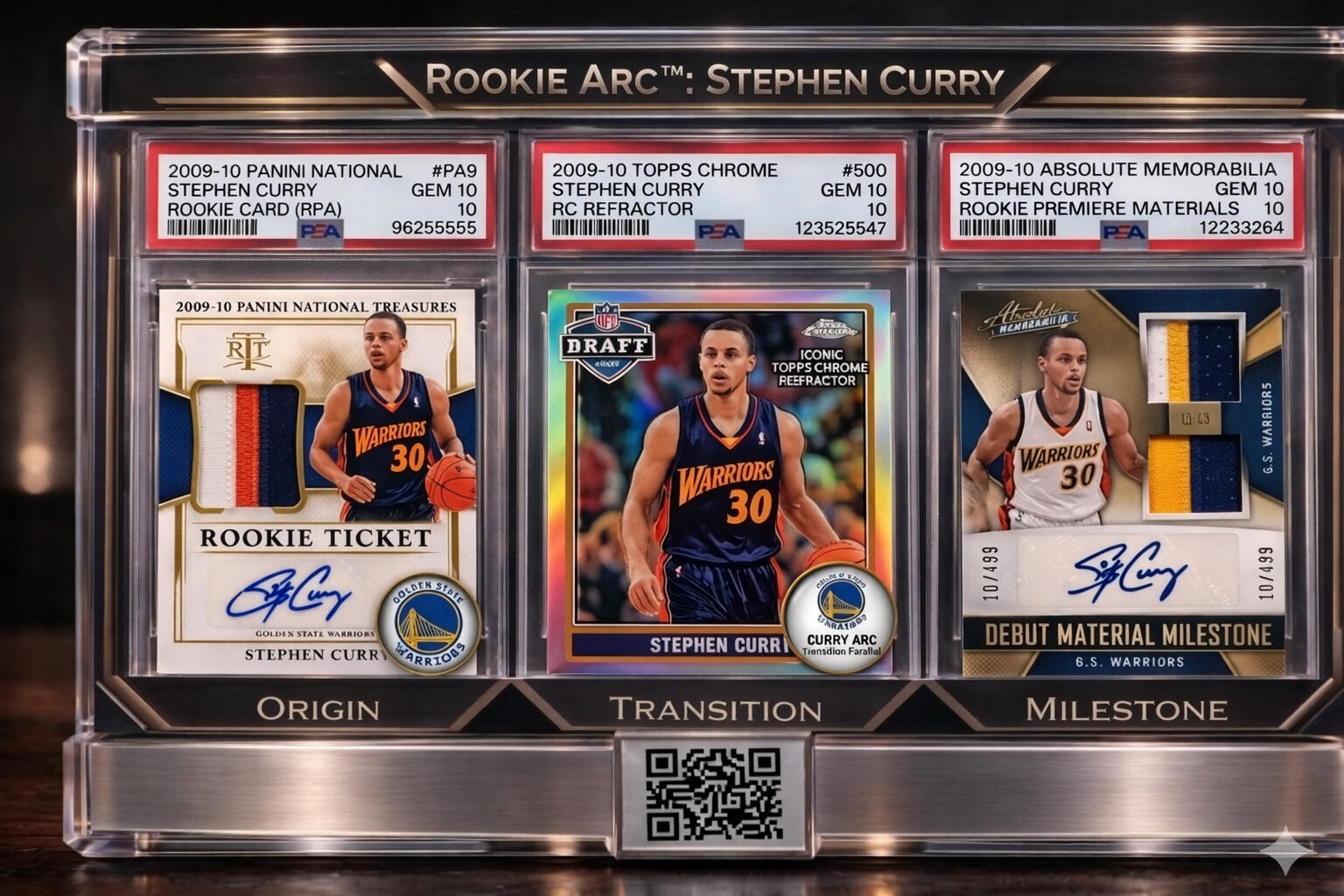 A completed Rookie Arc™ brings together three key rookie cards into a single, structured collectible,designed for display, meaning, and long-term value.